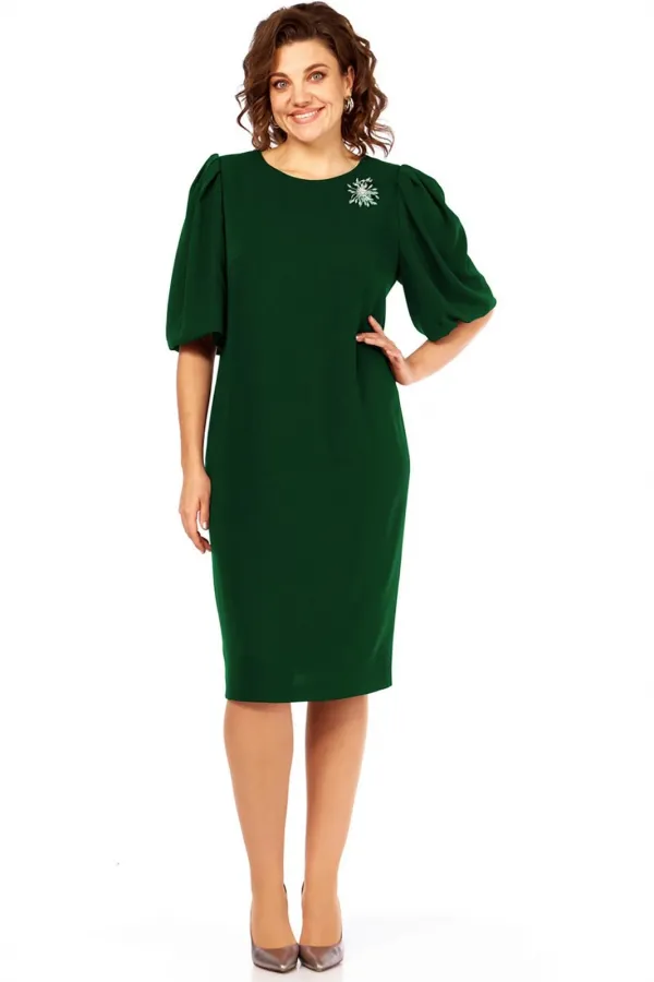 Платье-футляр, полуприлегающего силуэта, длины миди, без подкладки. Рукава – «фонарики», горловина круглая. Объемное украшение (брошь) пристегивается. По спинке шов, в котором обработана застежка-молния и шлица для удобс... Читать далее...