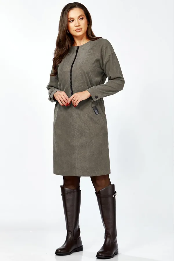 Платье полуприлегающего силуэта из мягкой, комфортной штруксовой ткани. Рукав спущенный, длинный, на манжете с застёжкой на 1 петлю и 1 пуговицу, разрезом. Горловина круглая, застёжка на тесьму-молнию контрастного цвета ... Читать далее...