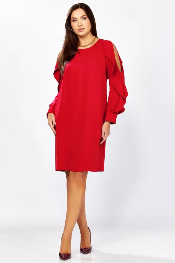 Романтичное платье прямого силуэта, без подкладки. Округлый вырез горловины обработан бейкой. Перед с нагрудной вытачкой. Рукав реглан с вырезом и двумя рюшами. Рукав с манжетой по низу. застегивается на 2 пуговицы и п... Читать далее...