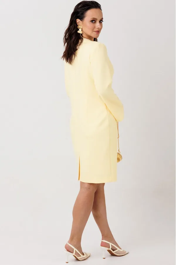 Конструктивные особенности: Прямой крой с приталенным силуэтом подчеркивает фигуру, сохраняя строгую линию. Спинка выполнена без декоративных элементов (простая конструкция, соответствующая стандартам швейного производства). Идеально для официальных мероприятий, деловых встреч и вечерних образов. Сочетает классические элементы костюмной моды с современными деталями, характерными для трендов 2026 года.