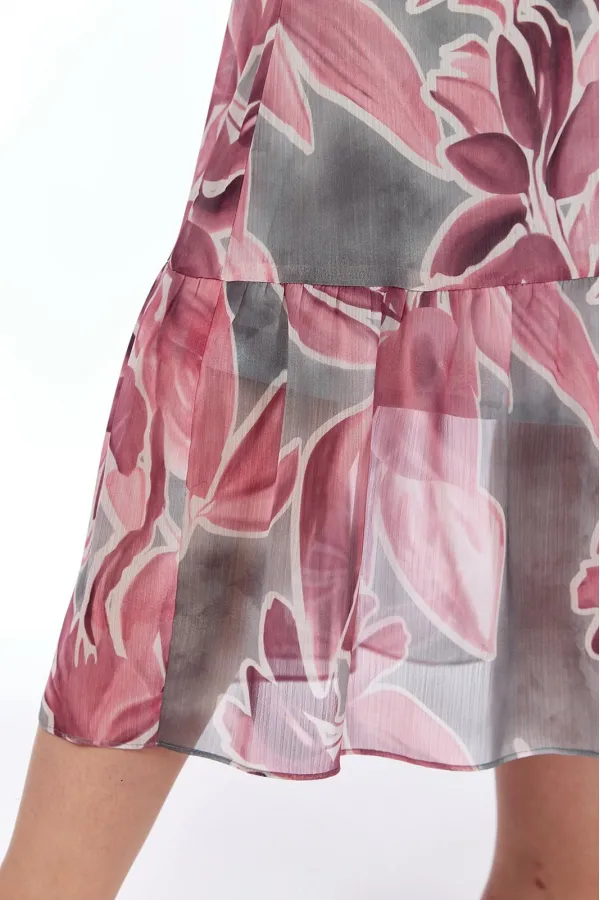 Платье женское А силуэта, на подкладке, без застежки. Перед с нагрудными вытачками. Спинка со средним швом. По низу платья пришит присобраный волан. Рукав свободный, одношовный, втачной, по окату заложена сборка, по низу... Читать далее...