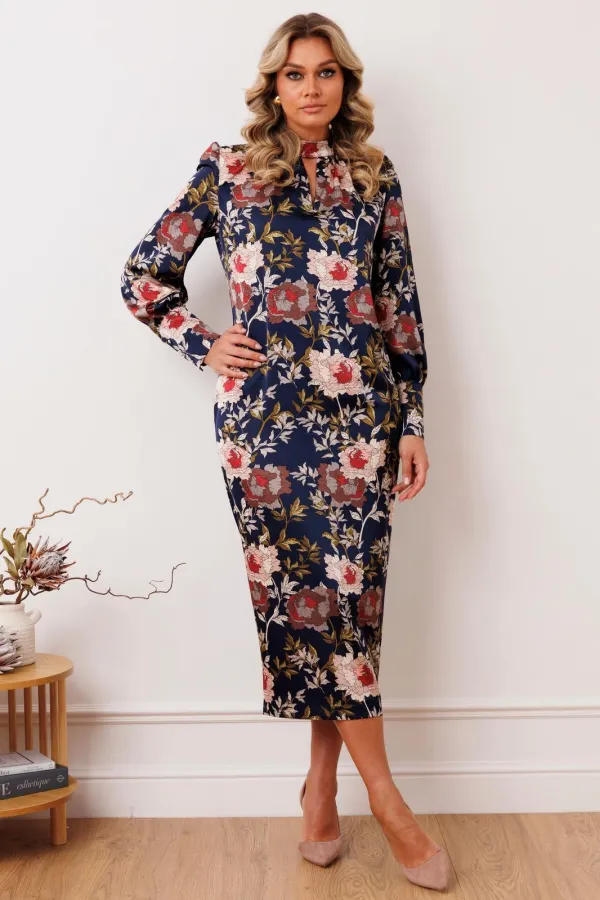 Нарядное платье из атласа - воплощение элегантности и роскоши. Полуприлегающий силуэт искусно подчеркивает изгибы фигуры. Изящный воротник-стойка добавляет строгости. От него ниспадает декоративная сборка и фигурный выре... Читать далее...