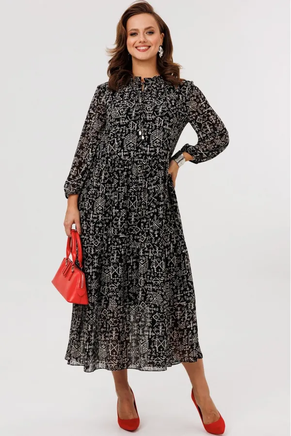 Стильное женское платье свободного силуэта, выполнено из плательной шифоновой ткани (не тянется) с дизайном «Геометрия», на подкладке (тянется).