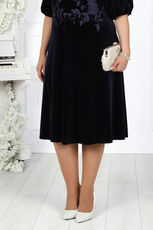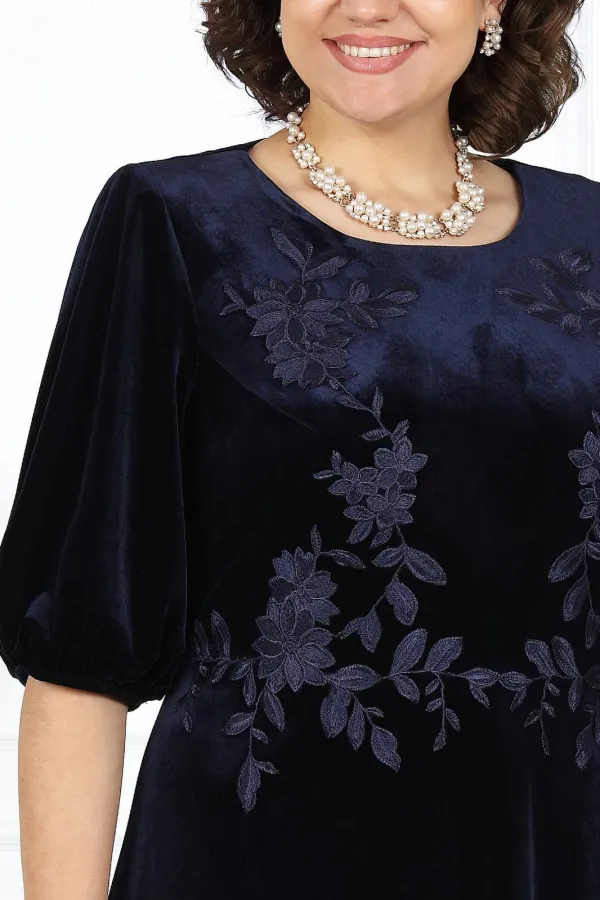 Это не просто наряд — это воплощение элегантности и утончённого вкуса. Мягкий бархатный велюр играет на свету, создавая эффект дорогого сияния, а дизайнерская аппликация подчёркивает статус и делает образ неповторимым.