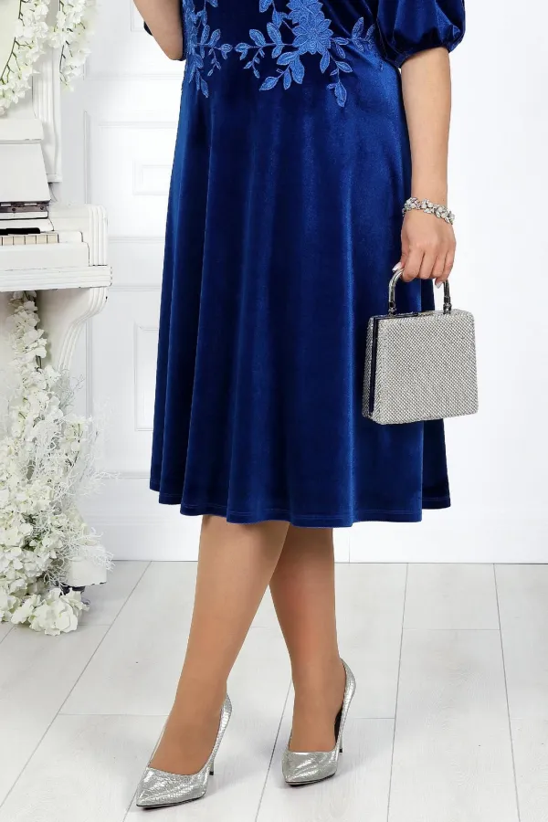 Это не просто наряд — это воплощение элегантности и утончённого вкуса. Мягкий бархатный велюр играет на свету, создавая эффект дорогого сияния, а дизайнерская аппликация подчёркивает статус и делает образ неповторимым.