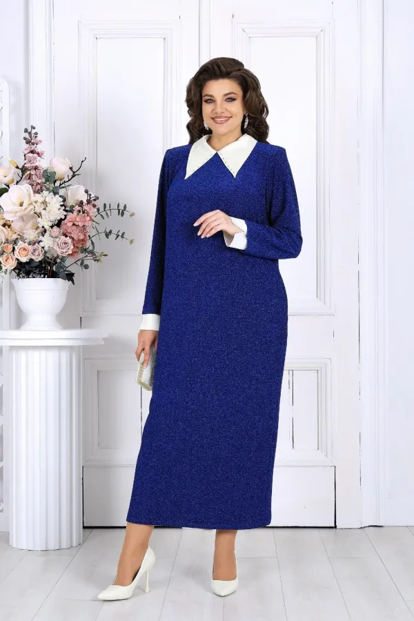 Это платье станет прекрасным выбором для вечерних мероприятий, деловых встреч или особых случаев, когда хочется быть уверенной в себе и выглядеть восхитительно. Выполненное из трикотажного полотна с изысканной фактурой и блеском люрекса, оно привлекает взгляд и подчеркивает вашу индивидуальность. Воротник и манжеты легко снимаются, превращая платье из нарядного вечернего в более повседневный вариант.