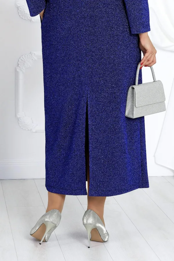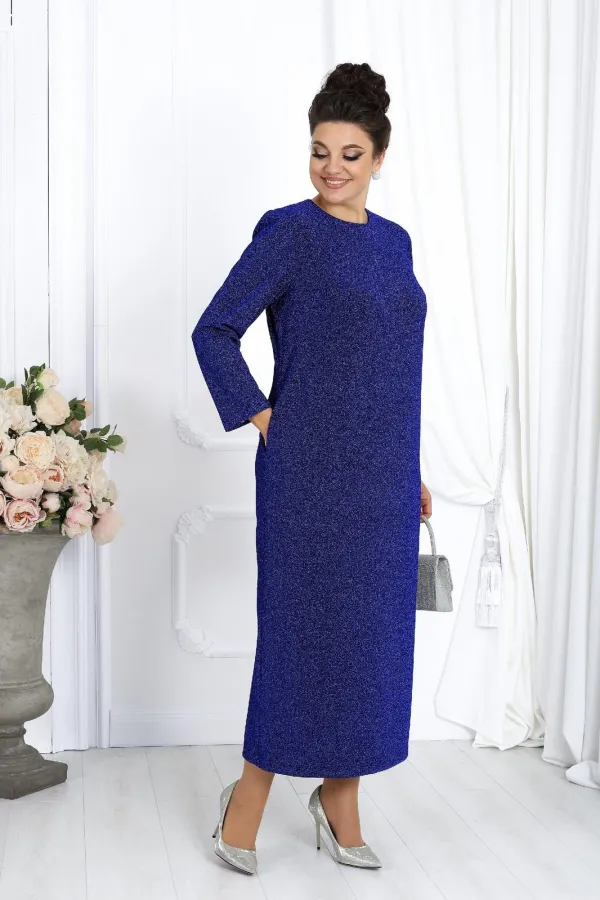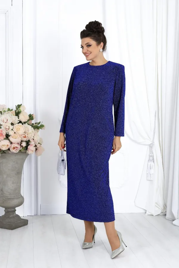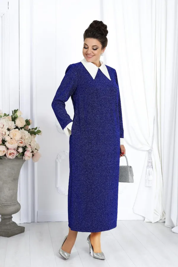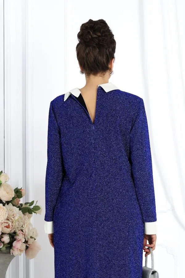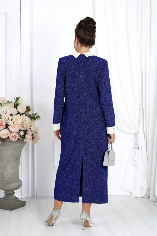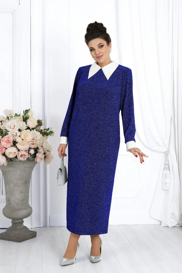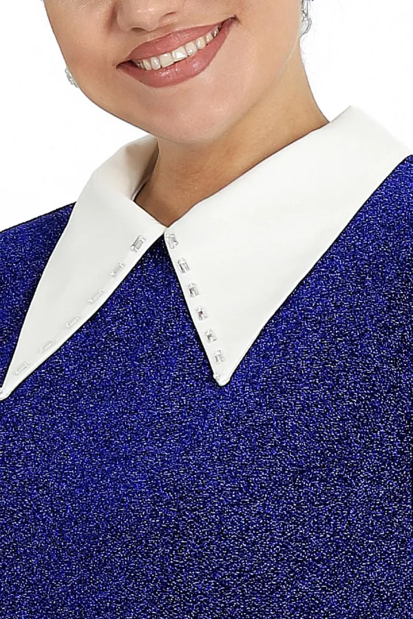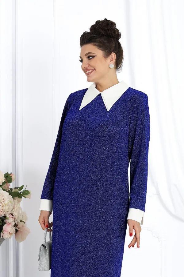 Это платье станет прекрасным выбором для вечерних мероприятий, деловых встреч или особых случаев, когда хочется быть уверенной в себе и выглядеть восхитительно. Выполненное из трикотажного полотна с изысканной фактурой и блеском люрекса, оно привлекает взгляд и подчеркивает вашу индивидуальность. Воротник и манжеты легко снимаются, превращая платье из нарядного вечернего в более повседневный вариант.