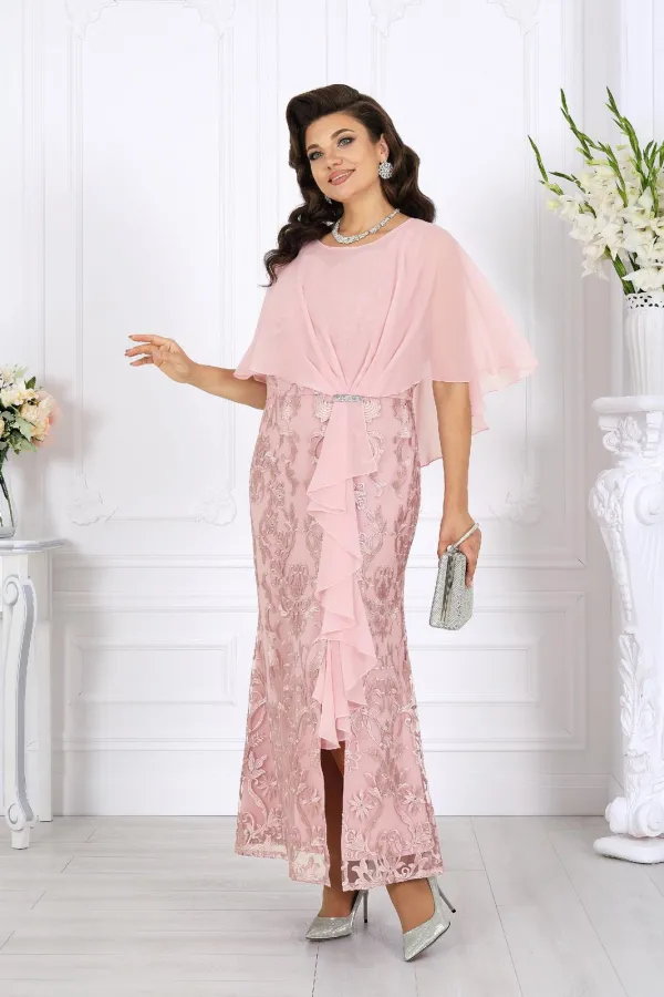 Это платье идеально подойдет для торжественных случаев: свадьбы, юбилея, выпускного, корпоративного вечера или любого особенного праздника. Оно гармонично смотрится в больших размерах и станет отличным выбором для женщин, ценящих качество, стиль и комфорт.