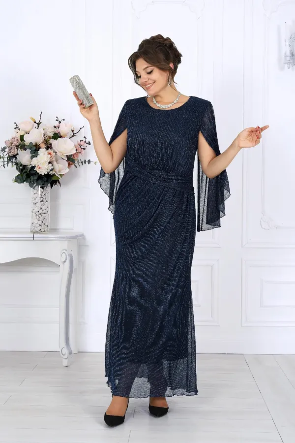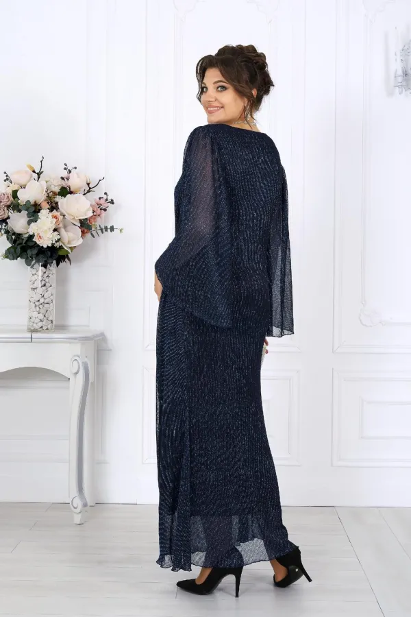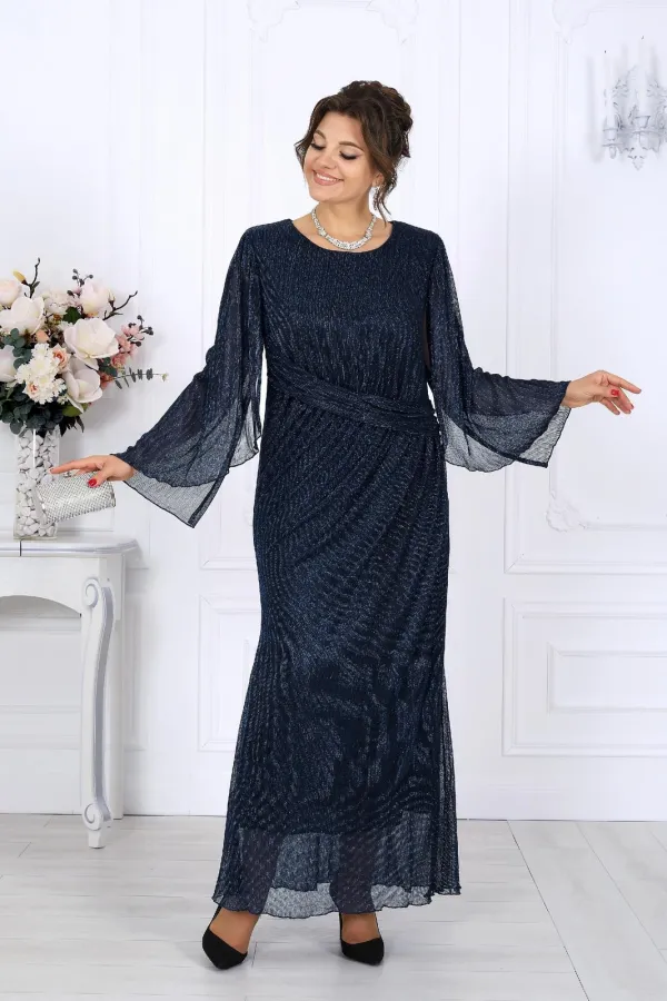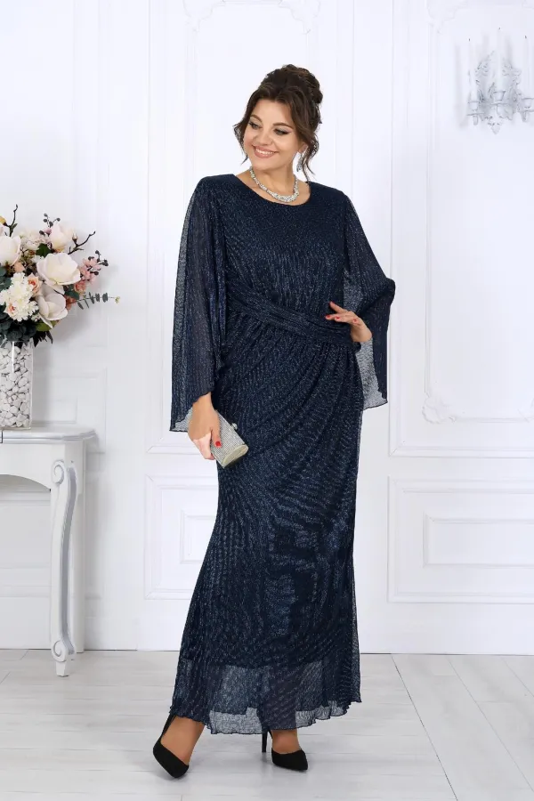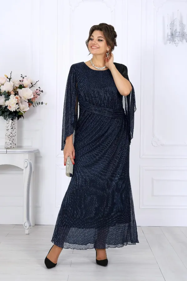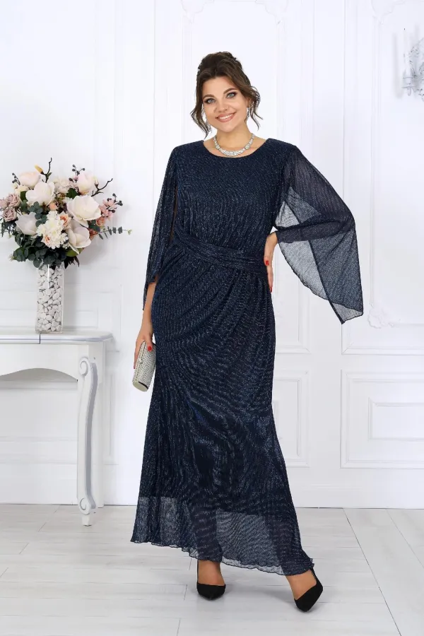 Длинное вечернее платье из элегантной сетки-гофре с нитью люрекс мерцает при каждом движении, словно улавливая в себе отблески огней. Этот деликатный блеск смотрится дорого и изысканно, создавая неповторимый аристократичный образ.