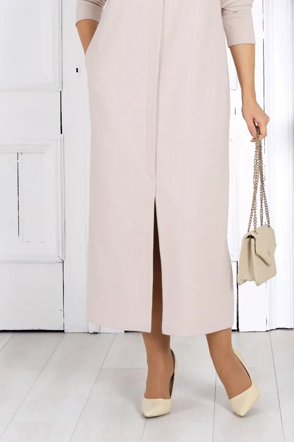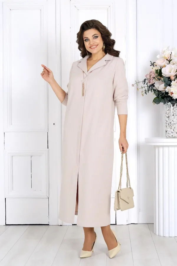 Элегантное офисное платье с карманами и разрезом для больших размеров. Пиджачный воротник модели придает особую строгость и стиль, идеально сочетаясь с деловым имиджем. Длинные рукава с притачными манжетами завершают образ, добавляя нотки классической элегантности. Это платье дарит не только стиль, но и ощущение уверенности, подчеркивая ваш статус и утонченный вкус. Подходит для женщин с любыми формами, создавая идеальный силуэт даже в больших размерах.