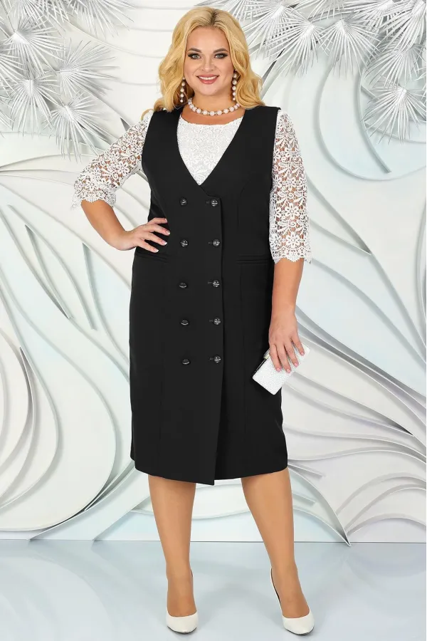 Этот сарафан, изготовленный из натуральной ткани, предлагает вам элегантность и комфорт в каждой детали. Его двубортный дизайн придает сарафану строгий и структурированный вид, что идеально подходит для офисного стиля. Однако, добавив праздничную блузку, вы трансформируете этот сарафан в стильное решение для торжественных событий.