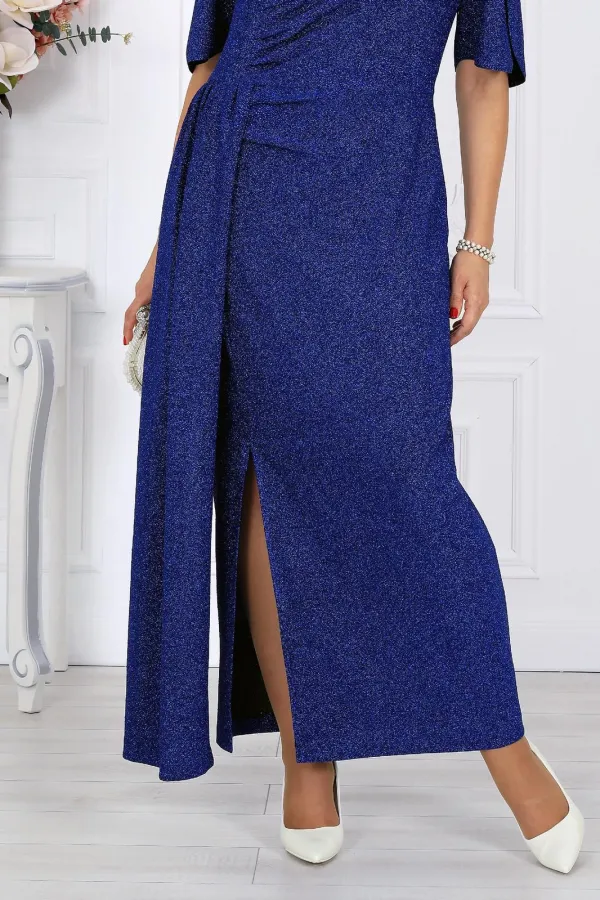 Платье, которое само по себе становится событием. Роскошное вечернее платье из мерцающего трикотажа с нитью люрекс создано, чтобы подчеркнуть женственность и элегантность в каждом движении. Оно притягивает взгляд, играя бликами при любом освещении — будь то мягкий свет ресторанных ламп или огни праздничного зала. Это тот редкий случай, когда комфорт и эффектность соединяются в идеальном балансе: платье выглядит торжественно, но остаётся удобным даже во время самого долгого вечера.
