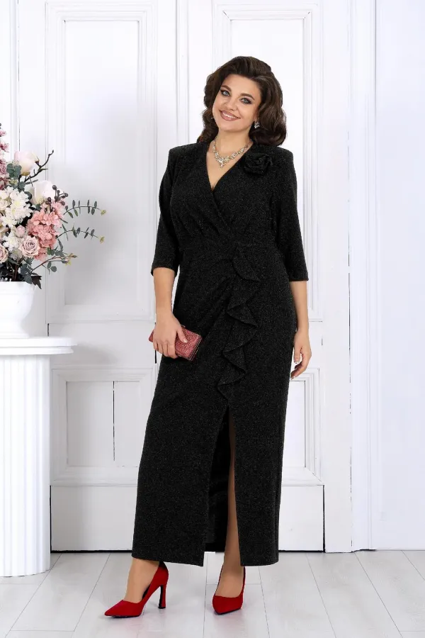 Платье продумано до мелочей, чтобы каждая женщина — в том числе в больших размерах — чувствовала себя уверенной, женственной и роскошной. Мерцающий люрекс под светом ламп и софитов смотрится особенно эффектно — идеально для свадьбы, юбилея, корпоратива, новогодней вечеринки или любого важного события, где нужно блистать.