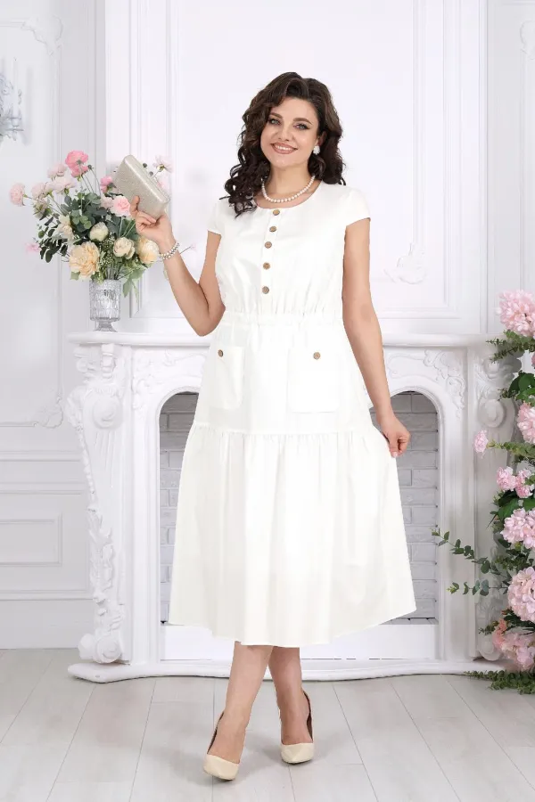 Это платье словно создано для тех дней, когда важны комфорт, женственность и ощущение внутренней свободы. Мягкий силуэт бережно повторяет линии фигуры, не сковывая движений, а деликатная кулиса на талии позволяет легко подчеркнуть её или оставить образ более расслабленным — так, как хочется именно вам. Натуральная ткань с хлопковой подкладкой дарит ощущение прохлады даже в тёплые дни, а продуманный крой идеально подходит для комфортной посадки в размерах plus size.