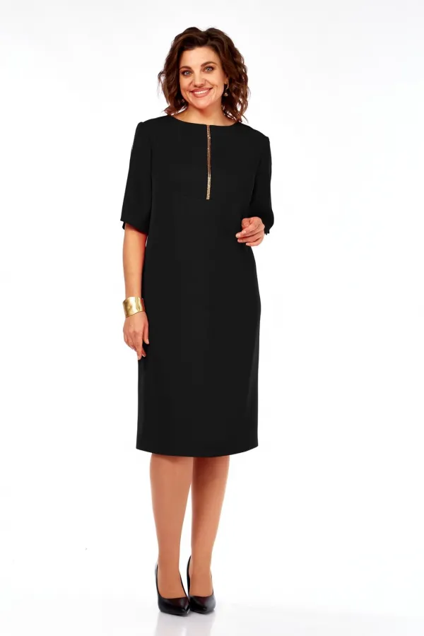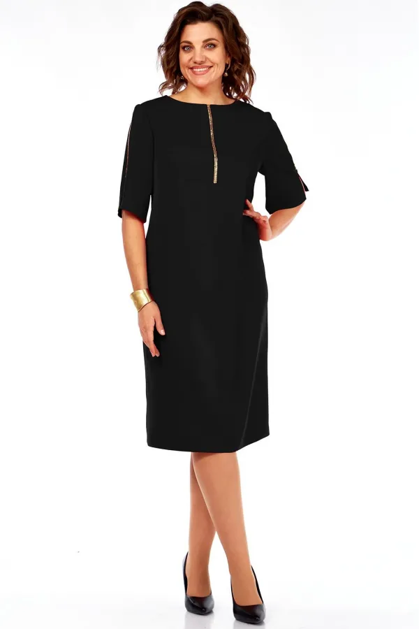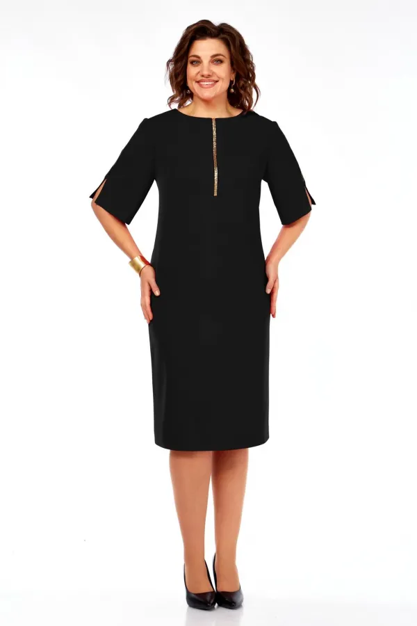 Очень интересное нарядное платье, полуприлегающего силуэта. Полочка украшена втачной тесьмой в золотом цвете, по центру до подреза. По спинке средний шов, потайная молния и разрез. Рукав втачной, длиной ниже линии локтя, по центру втачная декоративная тесьма.