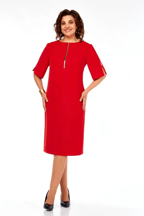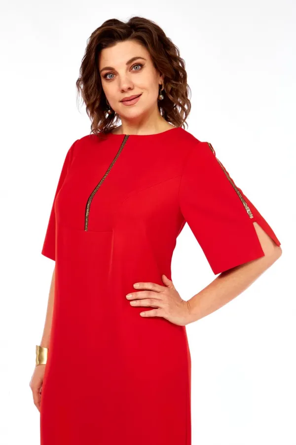 Очень интересное нарядное платье, полуприлегающего силуэта. Полочка украшена втачной тесьмой в золотом цвете, по центру до подреза. По спинке средний шов, потайная молния и разрез. Рукав втачной, длиной ниже линии локтя, по центру втачная декоративная тесьма.