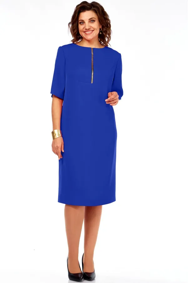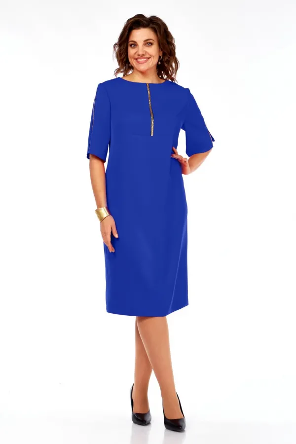 Очень интересное нарядное платье, полуприлегающего силуэта. Полочка украшена втачной тесьмой в золотом цвете, по центру до подреза. По спинке средний шов, потайная молния и разрез. Рукав втачной, длиной ниже линии локтя, по центру втачная декоративная тесьма.