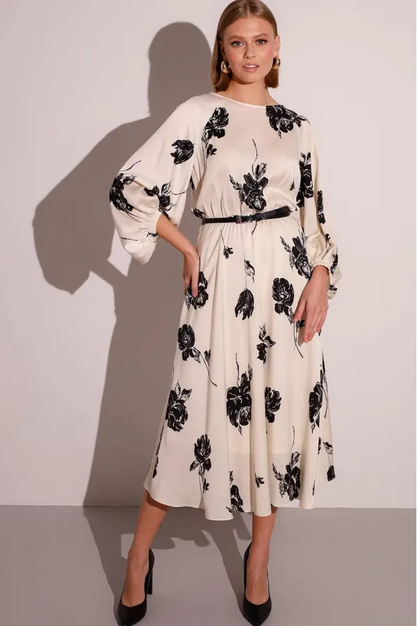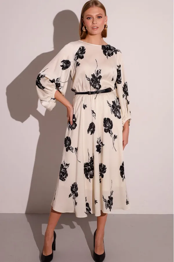 Платье с отрезной талией, на резинке, пояс в комплекте.