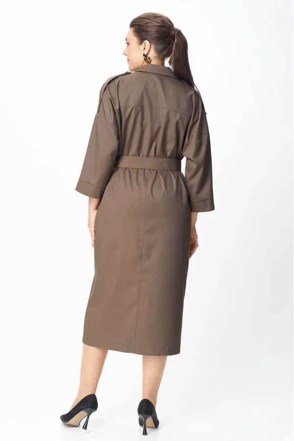 Платье дополнено поясом из основной ткани с элегантной пряжкой. Пояс позволяет подчеркнуть талию, создавая более женственный силуэт, или носить платье свободно, для расслабленного образа.