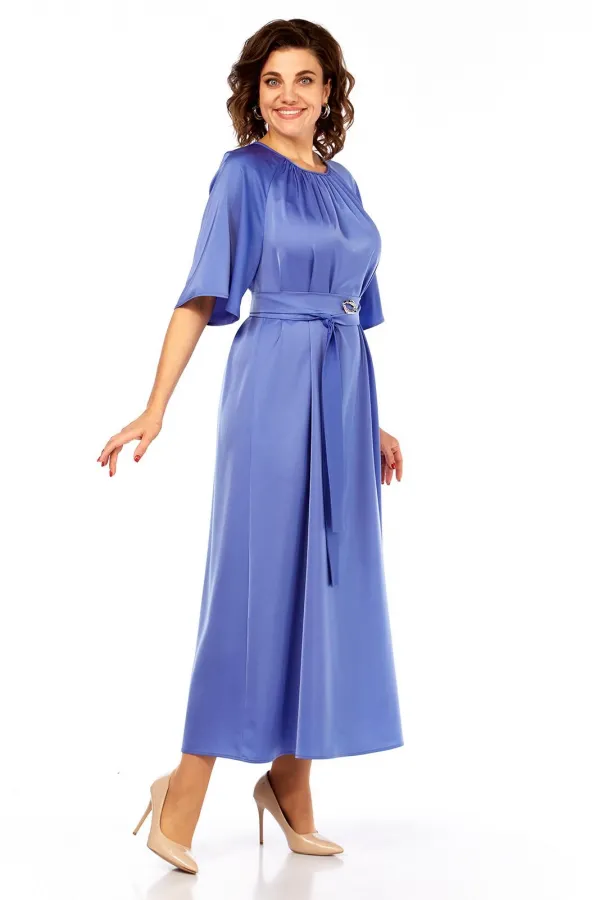 Сочетание элегантности и изысканности. Минималистичное по крою платье длины макси из двустороннего сатина. Вырез горловины округлый, спереди на сборке. Рукав реглан, расширенный к низу. Спинка со средним швом и углубленным разрезом сверху. Линия талии дополнительно подчёркивается поясом с декоративной фурнитурой.