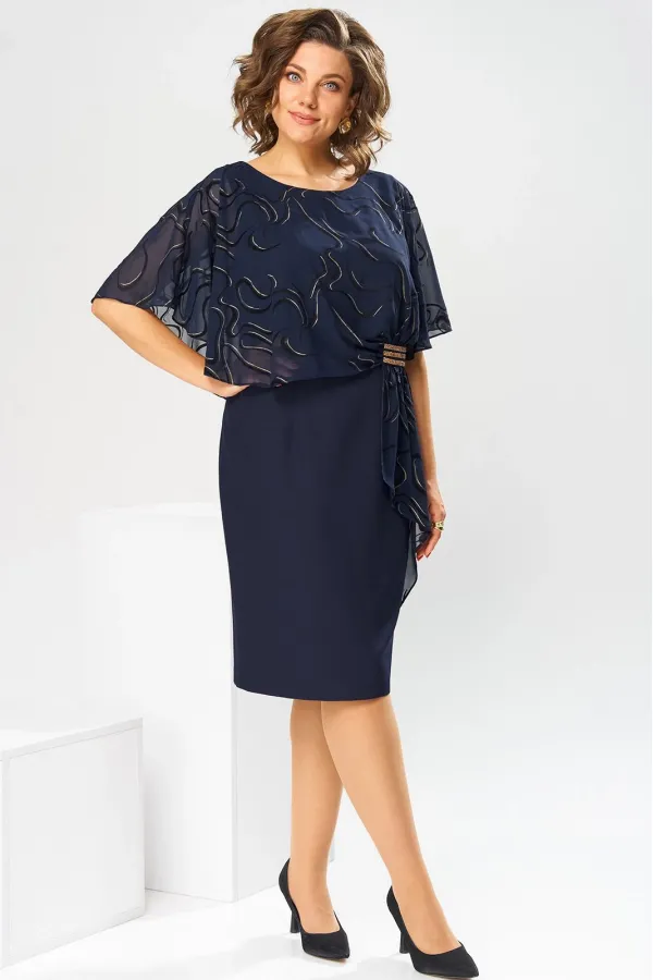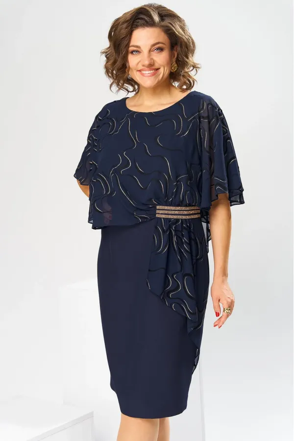 Платье женское относится к нарядной торжественной одежде. Платье полуприлегающего силуэта, с отлетной накидкой длиной за колено. Перед с двумя нагрудными вытачками, с двумя талиевыми вытачками. Спинка с двумя талиевыми в... Читать далее...