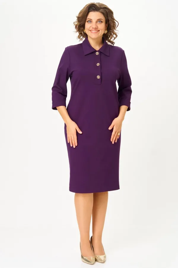 Платье женское из трикотажного полотна, станет идеальным выбором для создания стильного и комфортного образа. Платье полуприлегающего силуэта с втачным рукавом. По горловине отложной воротник. Застежка на петли и пуговицы по планке переда. Спинка цельная. В боковых швах обработаны карманы. Рукав длиной 7/8, по низу рукава отложная манжета.