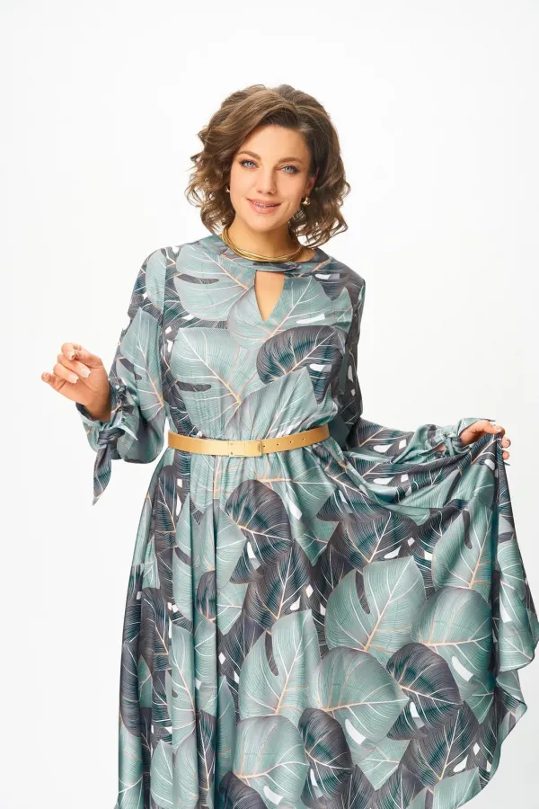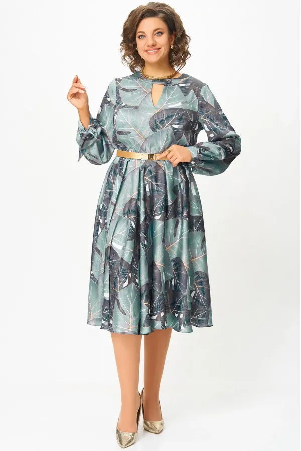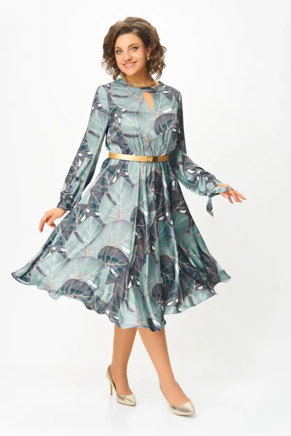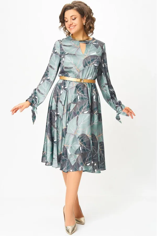 Платье из нежной ткани, имитирующей шёлк, Х-образного силуэта, отрезное по линии талии.