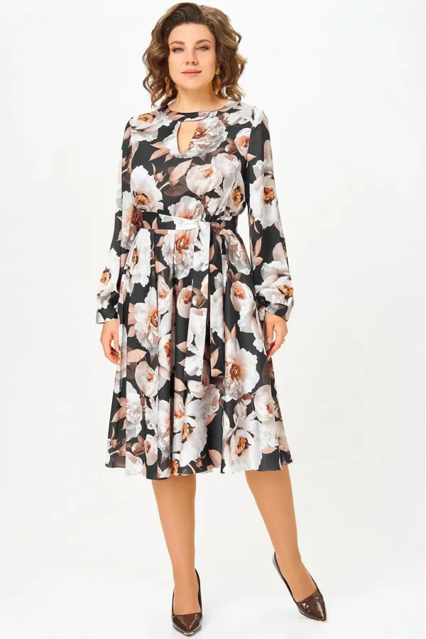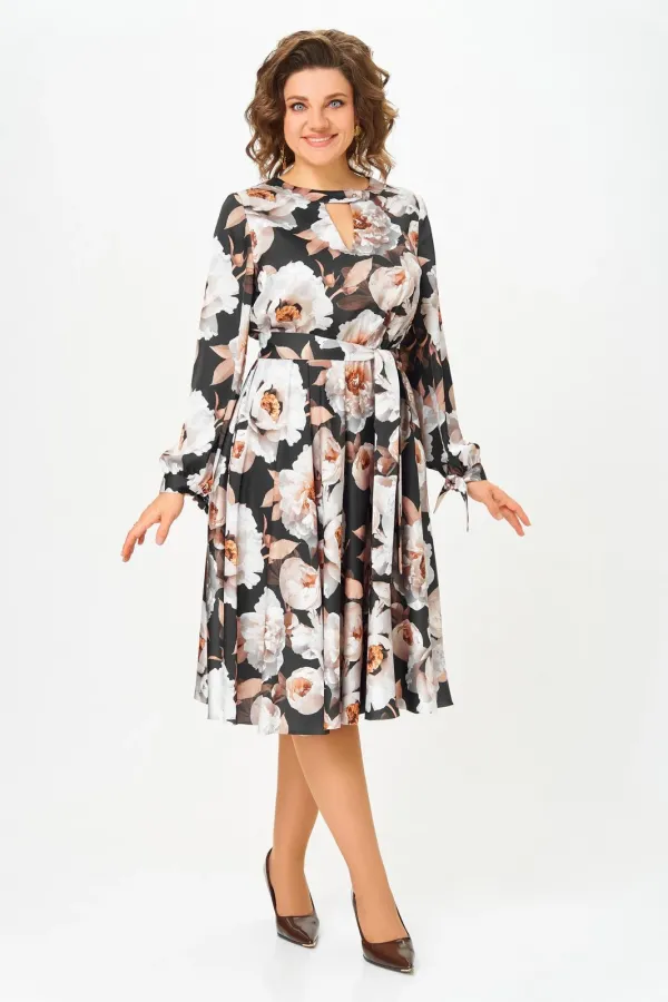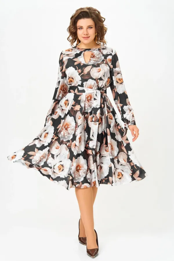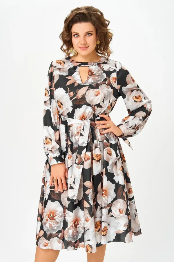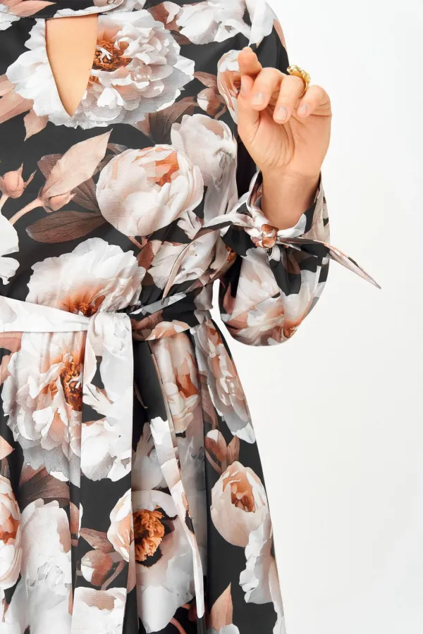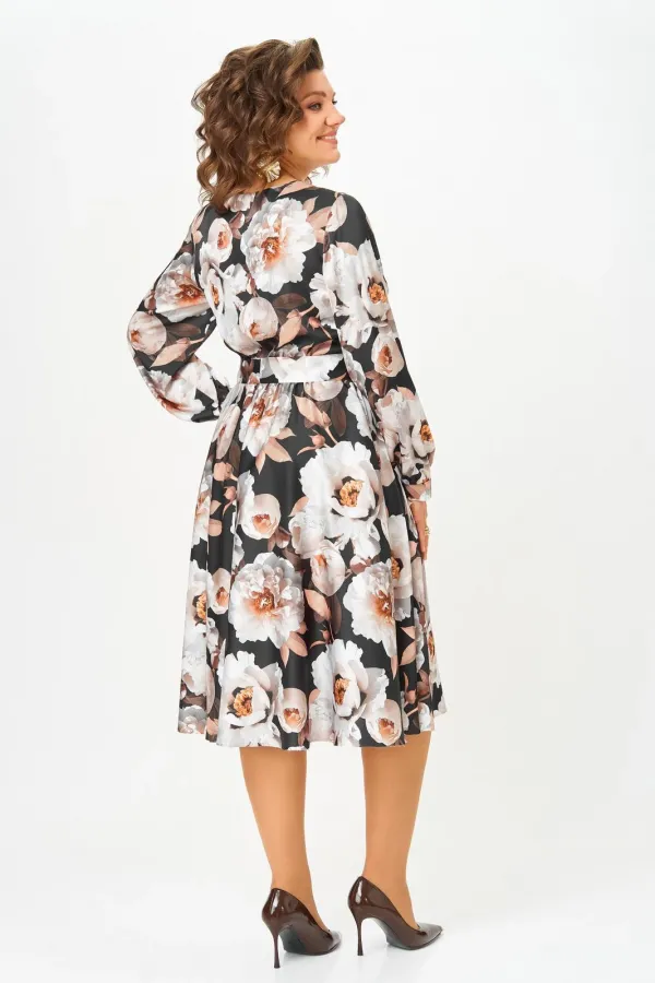 Код Товара: 707.2 чёрный/принт «бежево-молочные пионы» Swallow