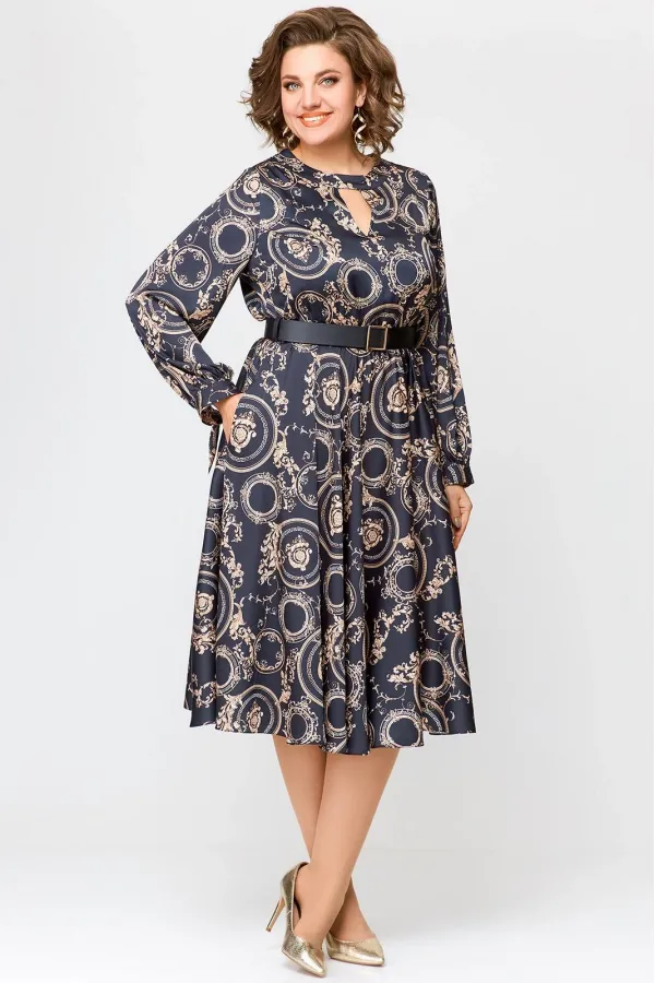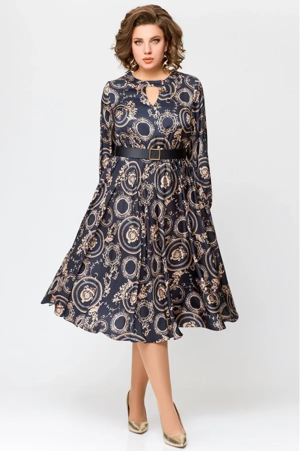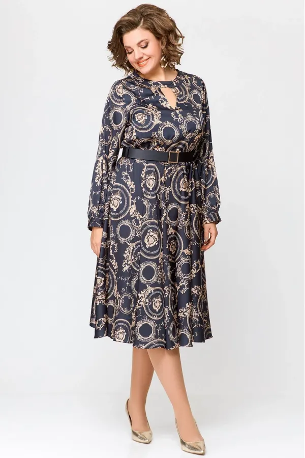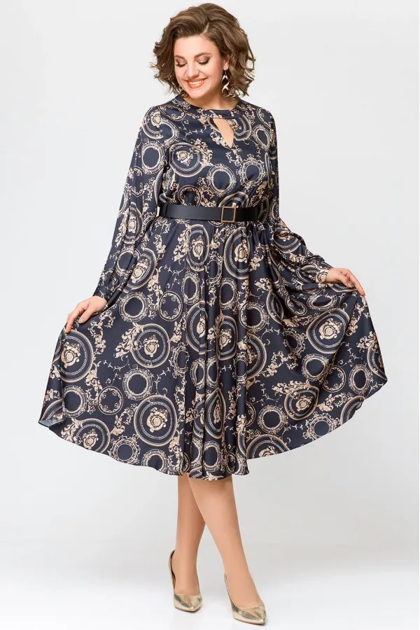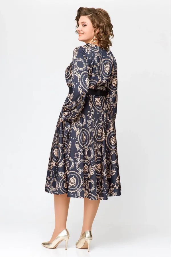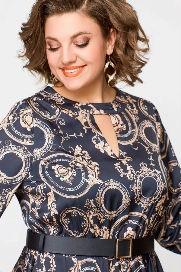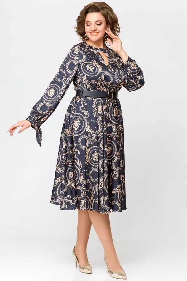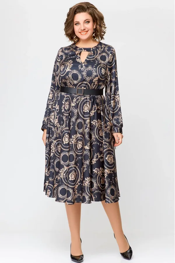 Платье из искусственного шёлка Х-образного силуэта, отрезное по линии талии. По переду лифа обработаны нагрудные вытачки, удлинённый V-образный вырез и отрезанная декоративная кокетка с застёжкой на кнопку. Спинка лифа ... Читать далее...
