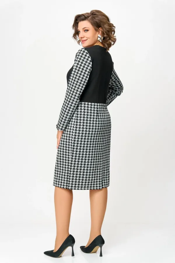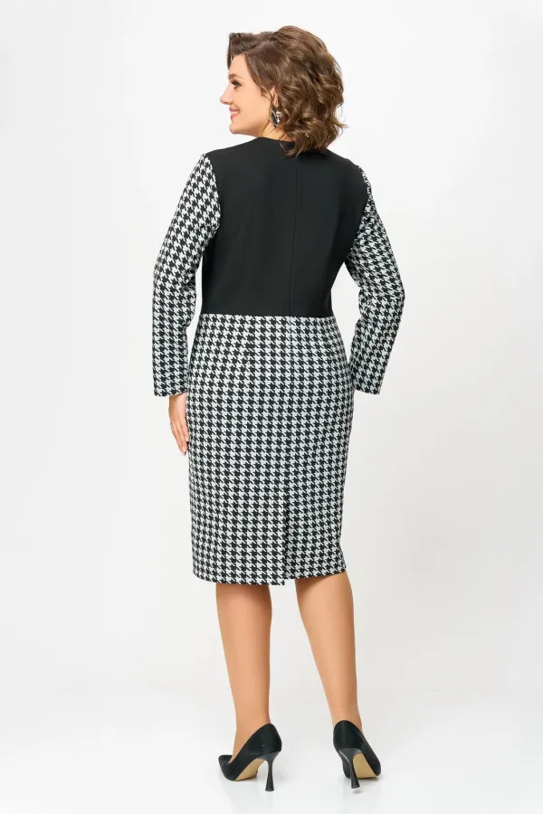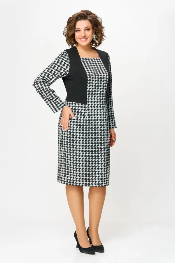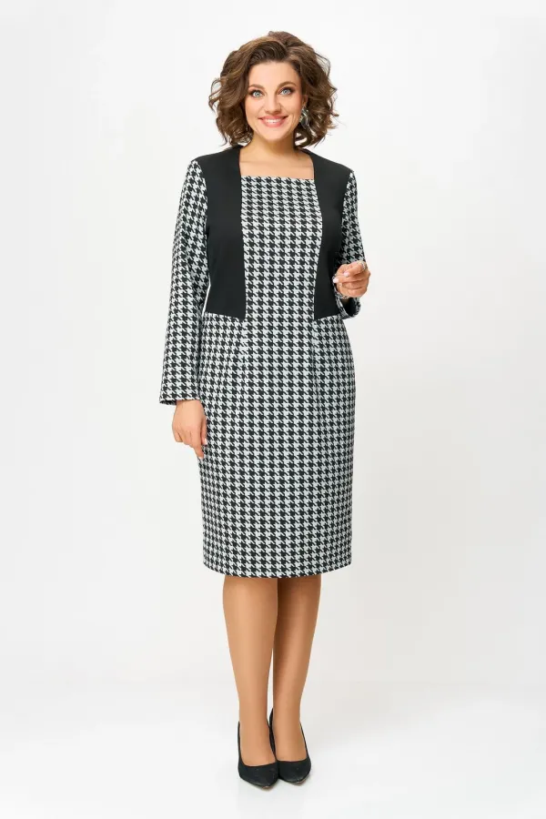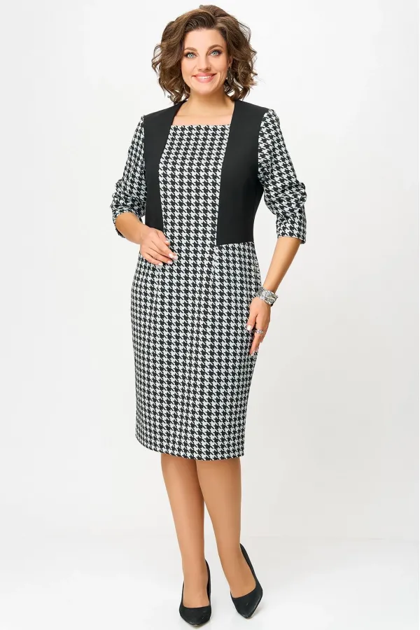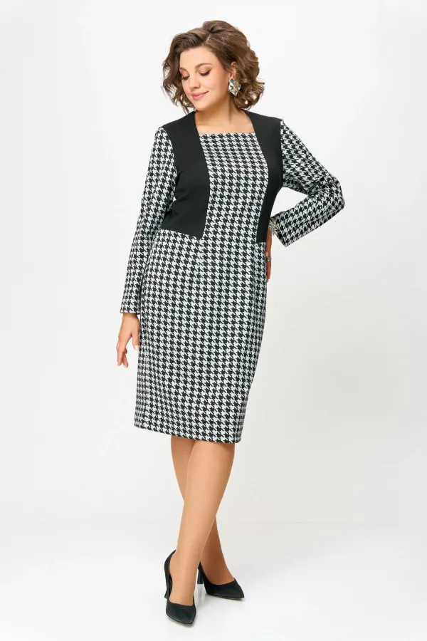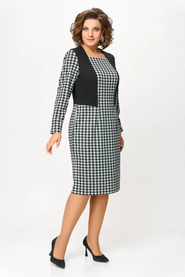 Платье полуприлегающего силуэта из эластичного трикотажного полотна, выполнено в комбинации принт и однотон с имитацией жилета.