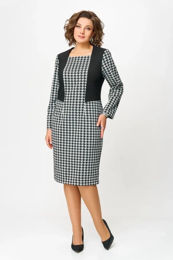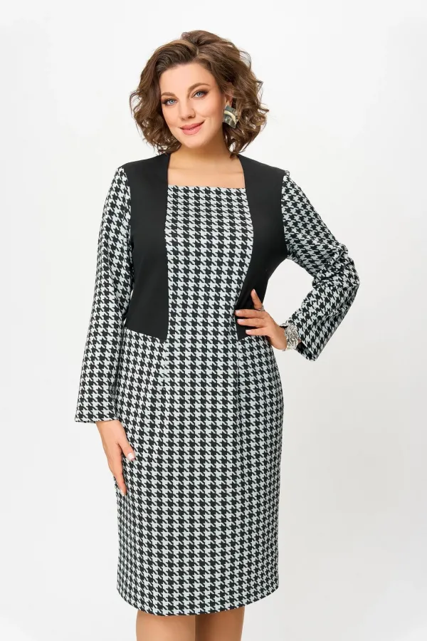 Платье полуприлегающего силуэта из эластичного трикотажного полотна, выполнено в комбинации принт и однотон с имитацией жилета. Полочка с рельефными швами, переходящими в талиевые вытачки и горизонтальными наклонными под... Читать далее...