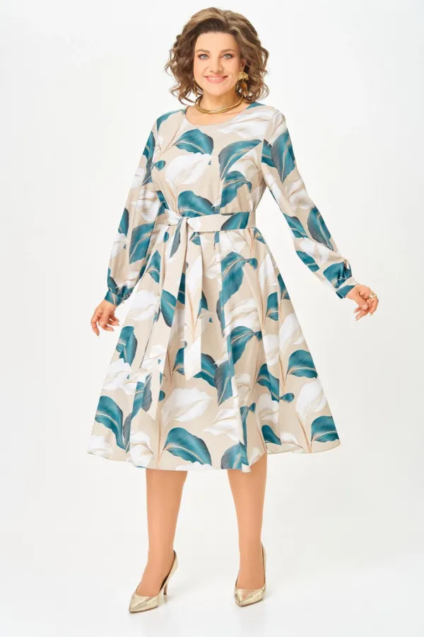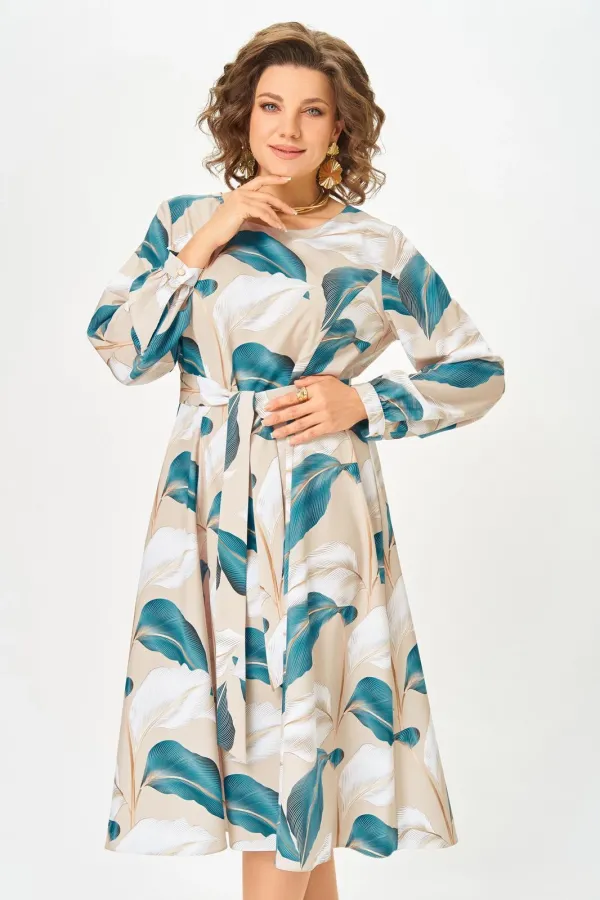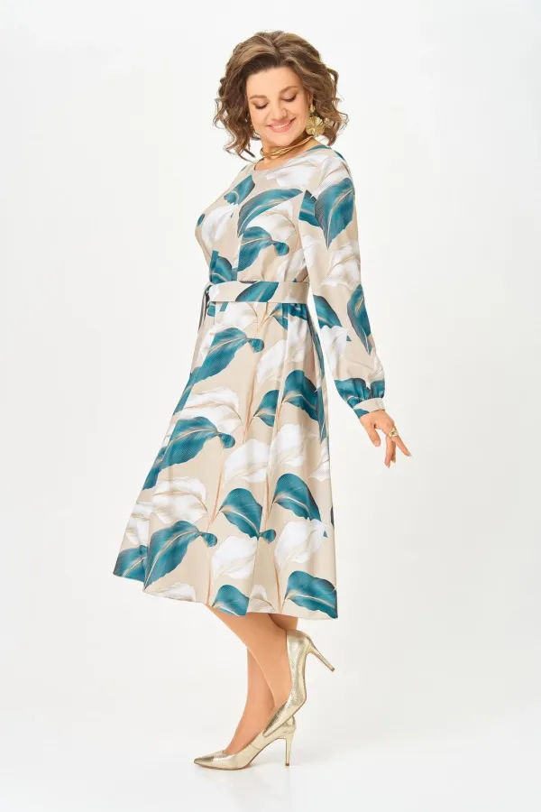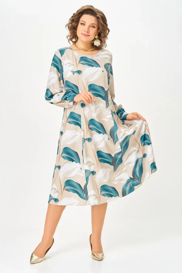 | Цвет | Бежевый принт «ярко-голубые и белые листья» |