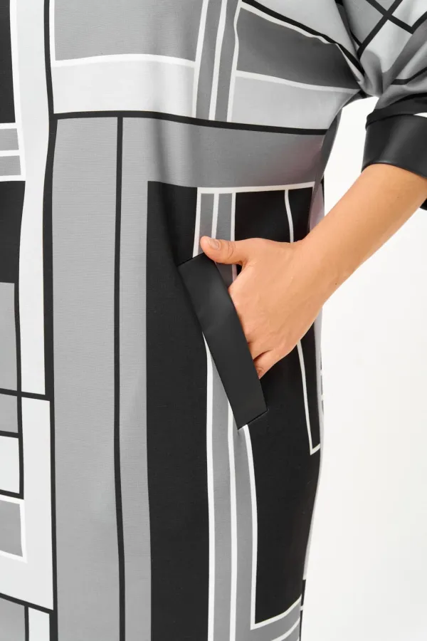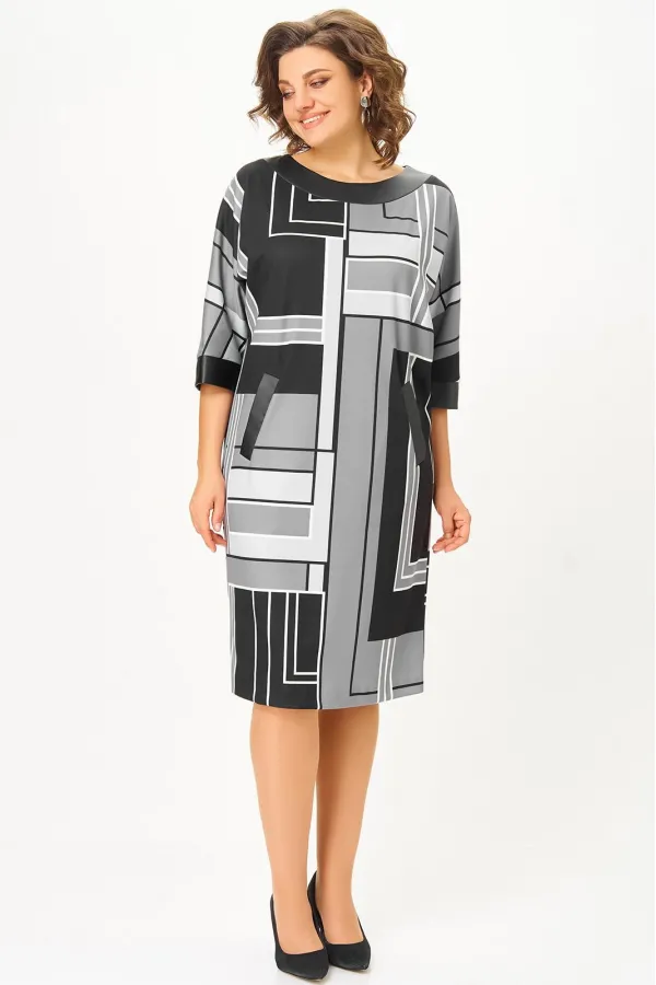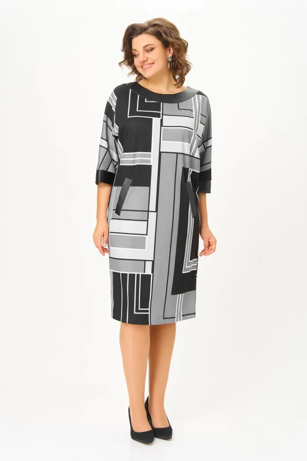 Код Товара: 888 принт «геометрия» в чёрном, сером и молочном цветах Swallow