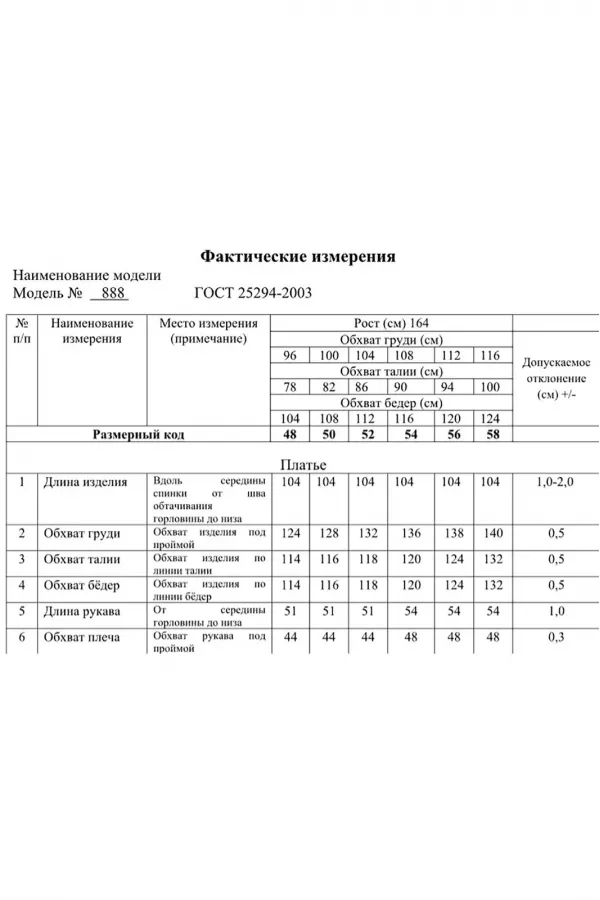Длина платья по спинке – 104 см (±3 см)