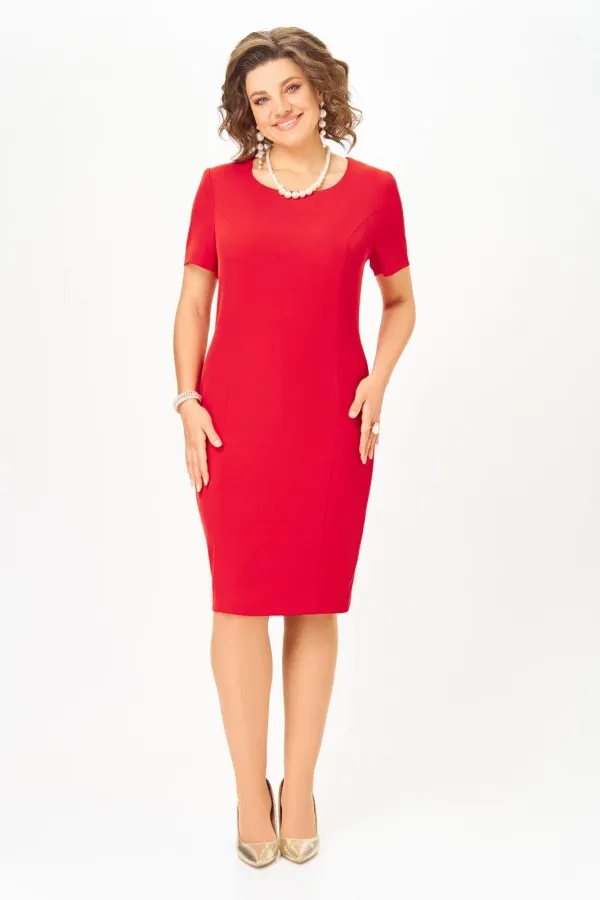 Платье полуприлегающего силуэта из мягкой поливискозной ткани. По полочке выполнены рельефные швы, по спинке рельефные швы, средний шов со шлицей и застёжка на потайную тесьму-молнию. Горловина круглая, обработана обтачк... Читать далее...