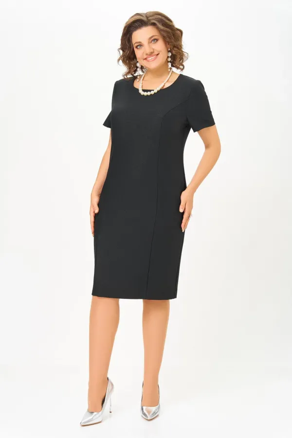 Платье полуприлегающего силуэта из мягкой поливискозной ткани. По полочке выполнены рельефные швы, по спинке рельефные швы, средний шов со шлицей и застёжка на потайную тесьму-молнию. Горловина круглая, обработана обтачк... Читать далее...