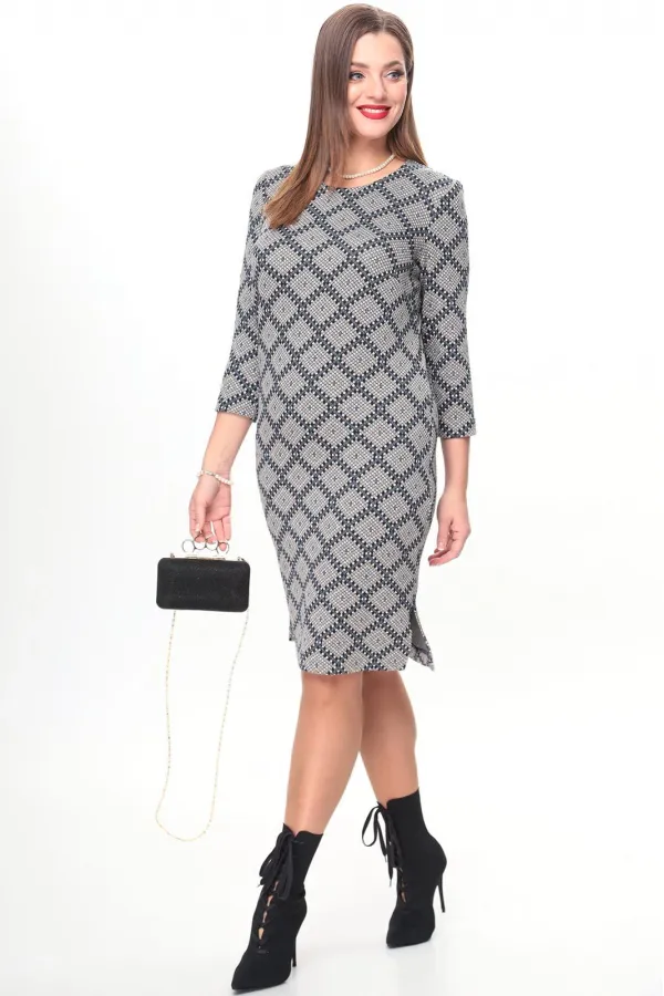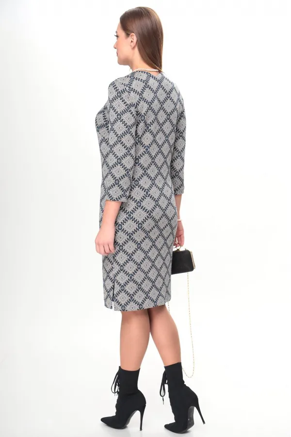 Элегантное мягенькое трикотажное платье. Прямое, слегка приталенное с округлым вырезом спереди и треугольным сзади, что придает платью элегантность. Длина платья от плеча по спинке-103 см, рукава-50 см. Рост модели 172 см.