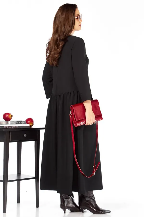 Стильное, красивое женское платье в стиле бохо из текстильной ткани Зара.. Платье может подойти как для повседневной носки, так и как праздничное, добавив аксессуар в виде броши, бус и др. Платье с втачным рукавом 7/8, длина рукава 53 см, снизу рукава разрезик. Спущенная линия талии к середине переда, воротник лодочка, сбоку платья функциональные карманы. Длина платья — 133 см .