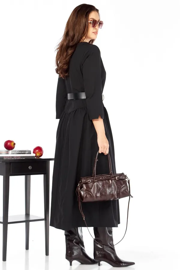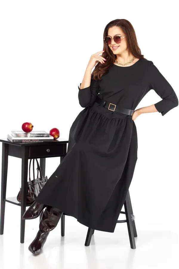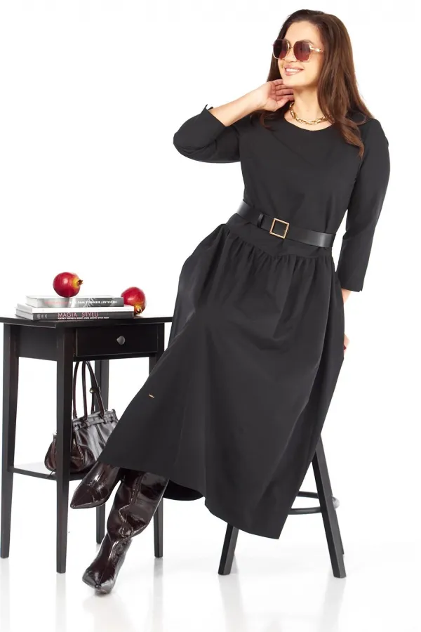 Стильное, красивое женское платье в стиле бохо из ткани напоминающей плащевку , но более на вид и по качеству шелковистая с шуршанием. Платье может подойти как для повседневной носки, так и как праздничное, добавив аксессуар в виде броши, бус и др. Платье с втачным рукавом 7/8, длина рукава 51 см, снизу рукава разрезик. Спущенная линия талии к середине переда, воротник лодочка, сбоку платья функциональные карманы. Ремень в комплекте. Длина платья — 131 см .