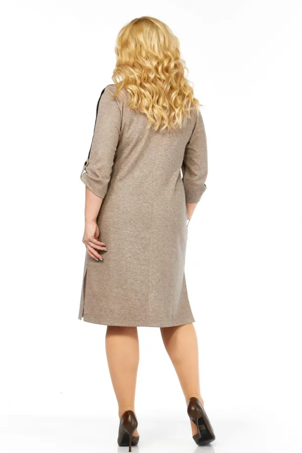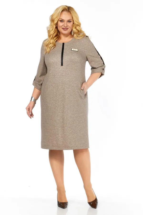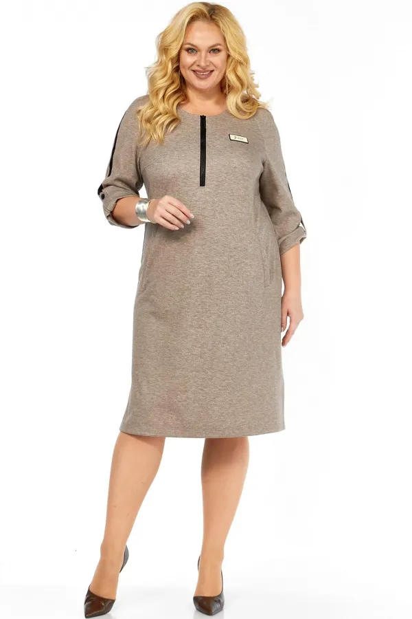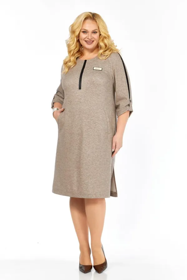 Стильное трикотажное платье с рукавом реглан выдержано в лаконичном дизайне и легко вписывается в базовый гардероб. Модель выполнена из мягкого эластичного трикотажа, комфортно садится по фигуре и обеспечивает свободу движений. Перед с нагрудными вытачками, планками горловины, застёжкой на акцентную молнию. Спинка со средним швом. В боковых швах разрезы. Рукав покроя реглан с вертикальной вставкой из отделочного материала, снизу присобран патой.