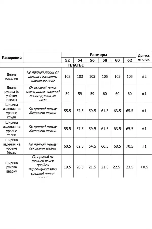 Длина от центра горловины спинки до низа для размеров 52-56 — 103 см, для размеров 58-62 — 105 см. Длина рукава с учётом плеча для размеров 52-56 — 59 см, для размеров 58-62 — 60 см.