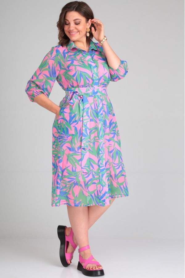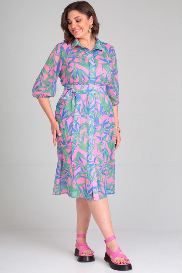 Платье А-образного силуэта под пояс, с подкладкой. Воротник рубашечного типа, планка с потайной застёжкой на петли пуговицы. В боковых швах карманы. Рукав ¾ на резинке. В комплекте пояс из основной ткани.... Читать далее...
