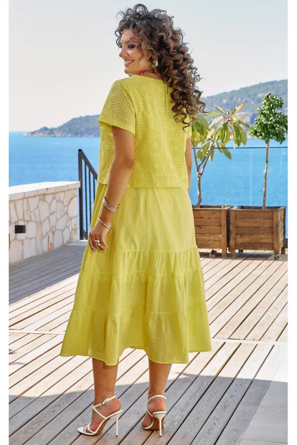 Мы в восторге от данной модели, а Вы? Летнее женское платье в ярком лимонном оттенке из ткани ришелье и однотонного материала представляет собой настоящее произведение искусства, воплощающее в себе свежесть и жизнерадост... Читать далее...