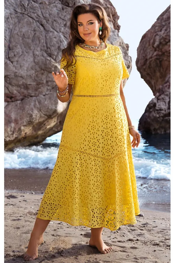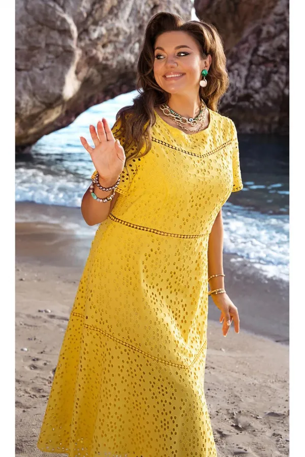 Платье в сдержанном элегантном стиле, из натурального хлопка с вышивкой ришелье, которое станет украшением Вашего гардероба. Платье А-силуэта с рельефами по лифу, округлой горловиной и кокеткой со вставкой из кружева на ... Читать далее...