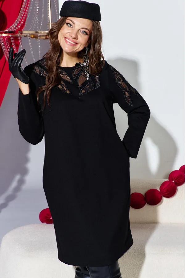 Оригинальное лаконичное платье, украшенное дизайнерской вышивкой с прозрачными элементами, рисуют образ сдержанной красоты и делают Вас поистине роскошной! Элегантный крой платья и пластические свойства инновационного трикотажного полотна помогут скрыть недостатки фигуры и создать идеальный силуэт. Платье прямого силуэта, свободного кроя с круглой горловиной, нагрудными вытачками, и втачными длинными рукавами. Верхняя часть переда и рукавов декорированы вышивкой со вставками из тончайшего кружева. По спинке платья вырез капелька с застёжкой на пуговицу в среднем шве. В боковых швах платья карманы. Длина платья 99 см (р 48-52), 101 см (р 54-58). Длина рукава 62 см.Подробные замеры смотрите на дополнительном фото. Подходит на рост 164-170.