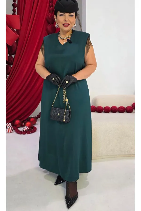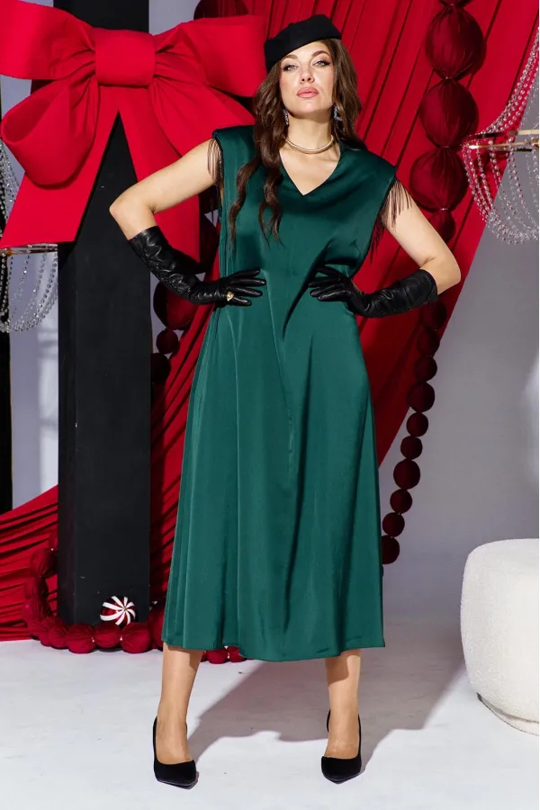 Платье для женщин в классическом стиле из легкой струящейся ткани небольшого объема полуприлегающего силуэта. Силуэт по геометрическому подобию напоминает трапецию, расширяющуюся к низу. Пластическая форма мягкая, плавная. Линия плеч немного поднята и имеет небольшой наклон. Платье цельнокроенное. Прилегание по талии немного выше естественной линии.Ширина проймы естественная, по высоте немного увеличена для создания эффектного выразительного образа. Деталь рукава выполнена небольшим элементом, по низу которого проходит декоративная тесьма-бахрома. Стильное длинное платье с идеальной посадкой по фигуре в тренде сезона подчеркивает женский элегантный образ. Платье современного фасона выполнено из качественных материалов с акцентом на фурнитуру в виде бахромы из металлических нитей. Вечернее платье станет идеальным вариантом для выхода в театр, концерт, торжественное мероприятие, фотосессию, вечеринку, торжественный вечер. Платье великолепно будет смотреться в ресторане, на юбилее, свадьбе, приеме, вручении премии «Оскар», «Гремми». Платье можно надеть на выпускной, на великосветскую тусовку. Длина платья 128 см.Подробные замеры смотрите на дополнительном фото. Подходит на рост 164-170.