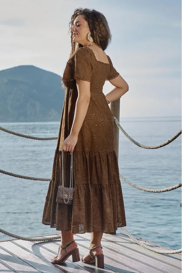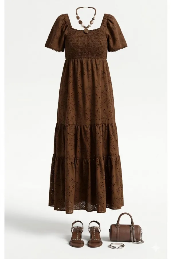 Женское платье из ришелье, в изысканном шоколадном оттенке, является настоящим произведением искусства, создавая гармоничное сочетание, которое привлекает внимание и восхищает. Дополняя это платье аксессуарами, которые г... Читать далее...