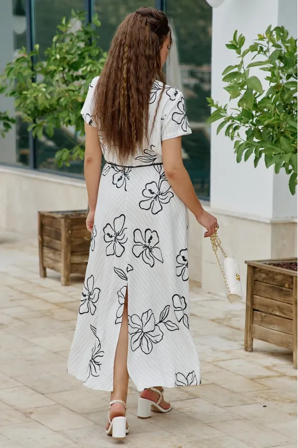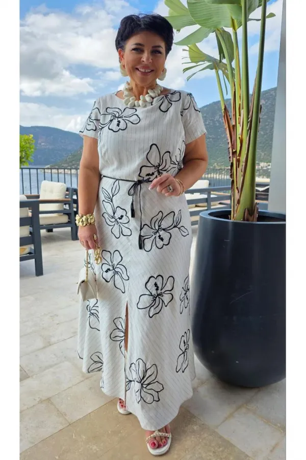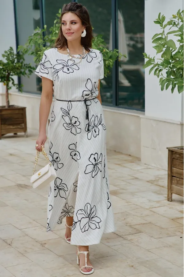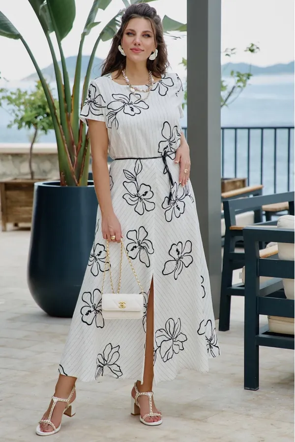 Летнее платье белого цвета украшено изысканными черными полосками пересекающимися с очаровательными цветами. Этот летний наряд идеально уместен как на вечерней прогулке по набережной, так и на встрече с друзьями в кафе. ... Читать далее...