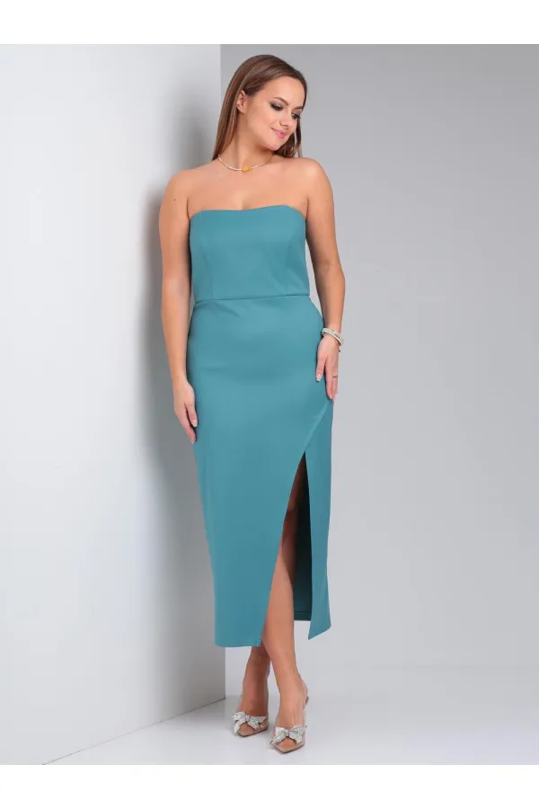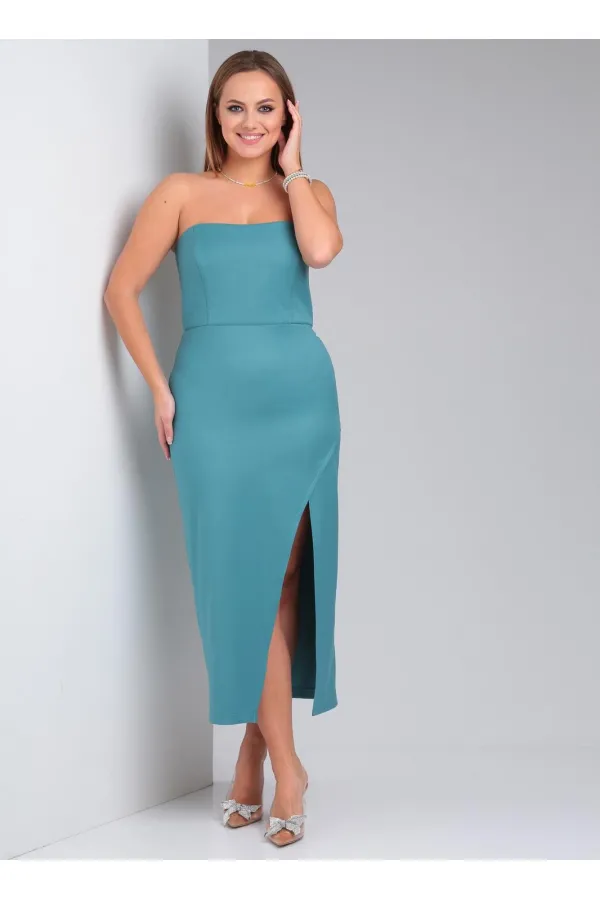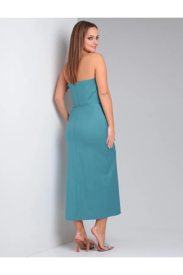 Платье женское корсетное, облегающего силуэта. Застегивается сзади на молнию. Отрезное по линии талии. Нижняя часть платья на полочке с запахом и фигурным разрезом. Длина изделия от талии для роста 164 см 87 см, для роста 170 см 91 см.