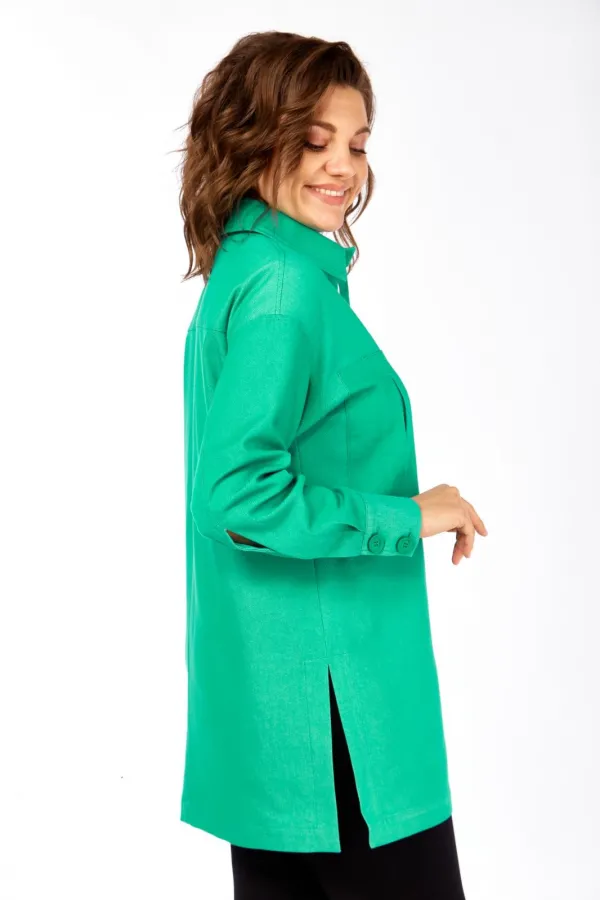 Рубашка свободного кроя, в стиле оверсайз. Силуэт свободный. На переде настрочены 2 фантазийных кармана. По боковым швам разрезы, отстроченные широкой отделочной строчкой. Рукав длинный двухшовный с длинным разрезом такж... Читать далее...